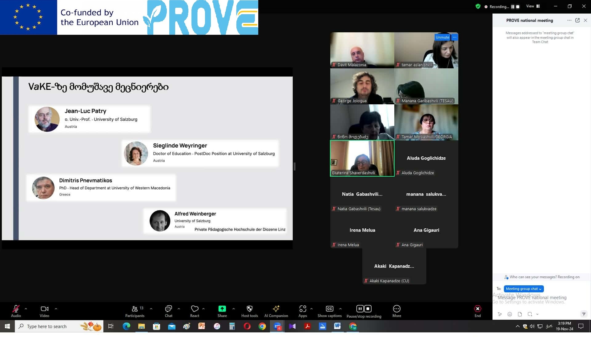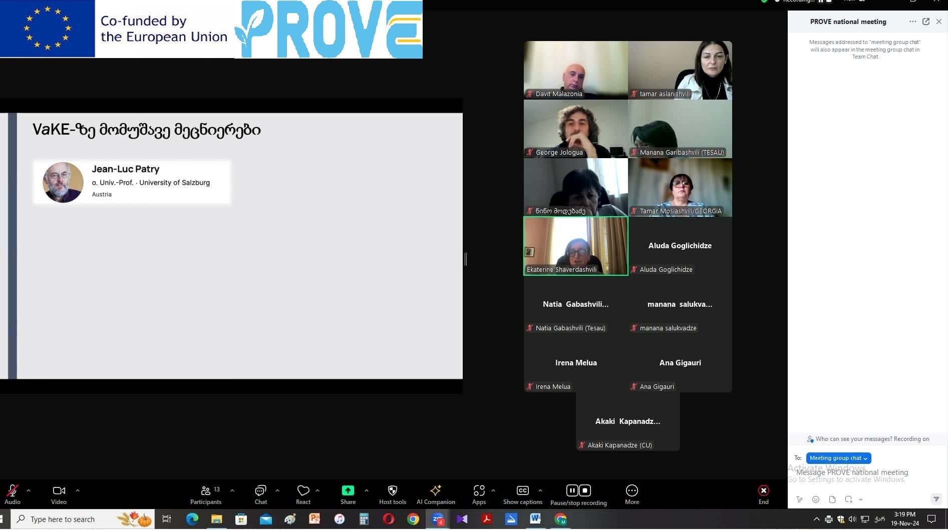 On November 19, 2024, a national meeting was successfully held in Georgia within the framework of the European Commission-funded PROVE project. The meeting brought together Georgian partner institutions actively engaged in the implementation of the initiative.