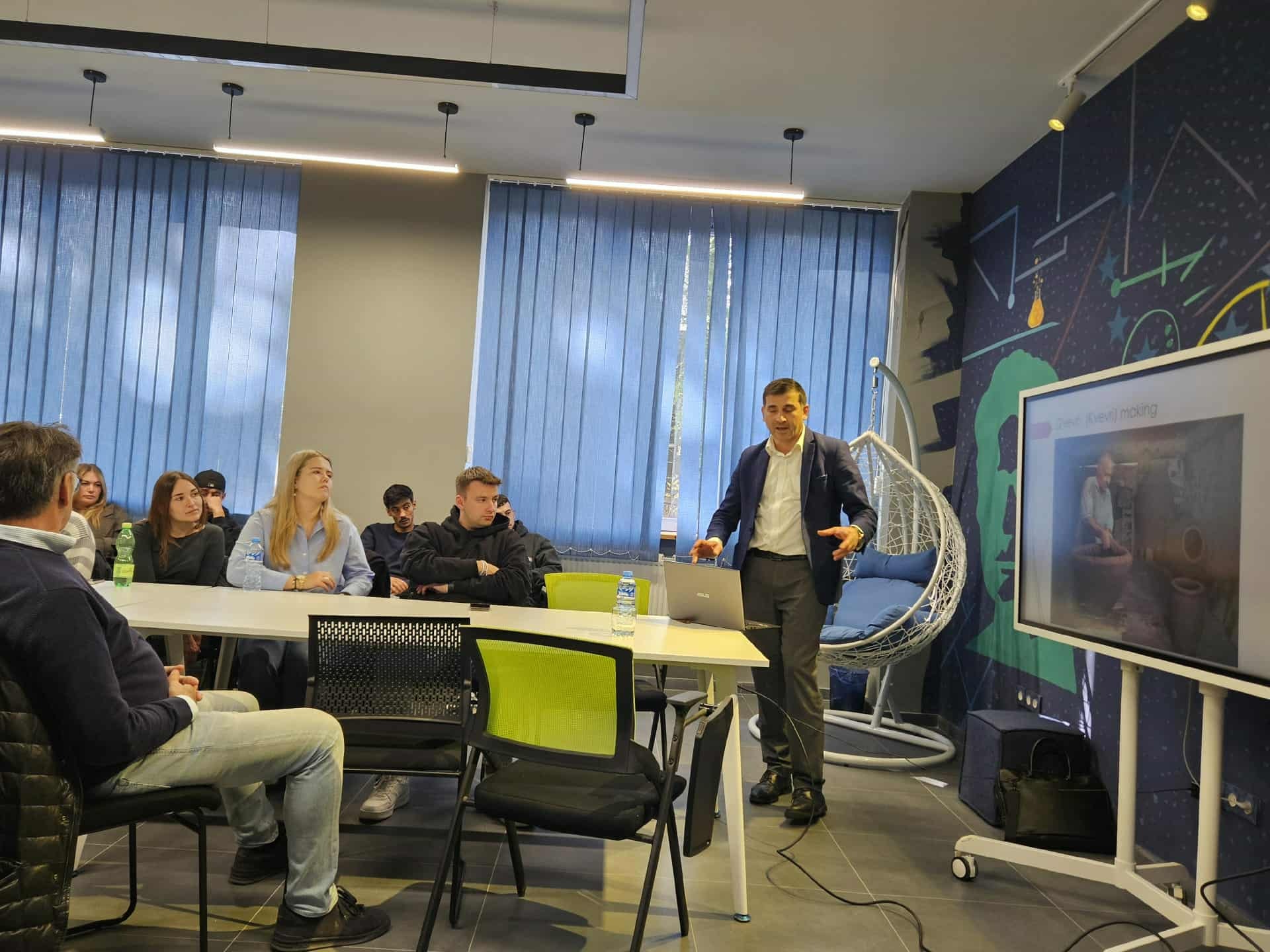 აგრარული მიმართულებით დაინტერესებულ სტუმრებს ქვევრის ღვინის შესახებ პრეზენტაცია შუხმან- ვაინს ჯორჯიას დირექტორმა როლანდ ბურდიაშვილმა წარუდგინა.