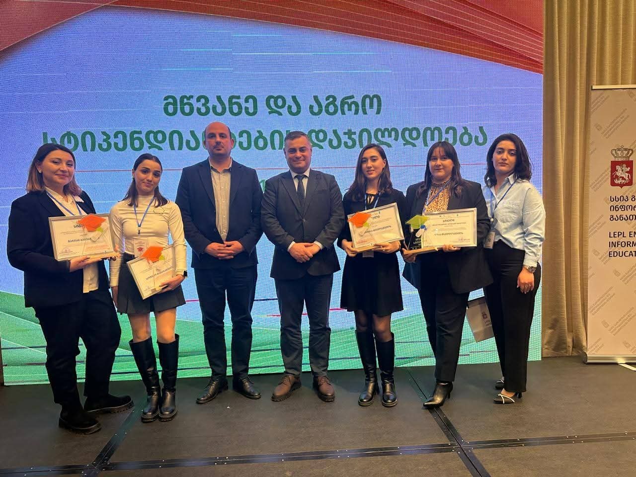 აგროსტიპენდიით დაჯილდოვდნენ მევენახეობა- მეღვინეობის სამაგისტრო პროგრამის სტუდენტი მარიამ ბეჟუაშვილი და სასურსათო ტექნოლოგიის საბაკალავრო პროგრამის სტუდენტები სოფიკო თამაზაშვილი და პატრისია მიქელაშვილი.