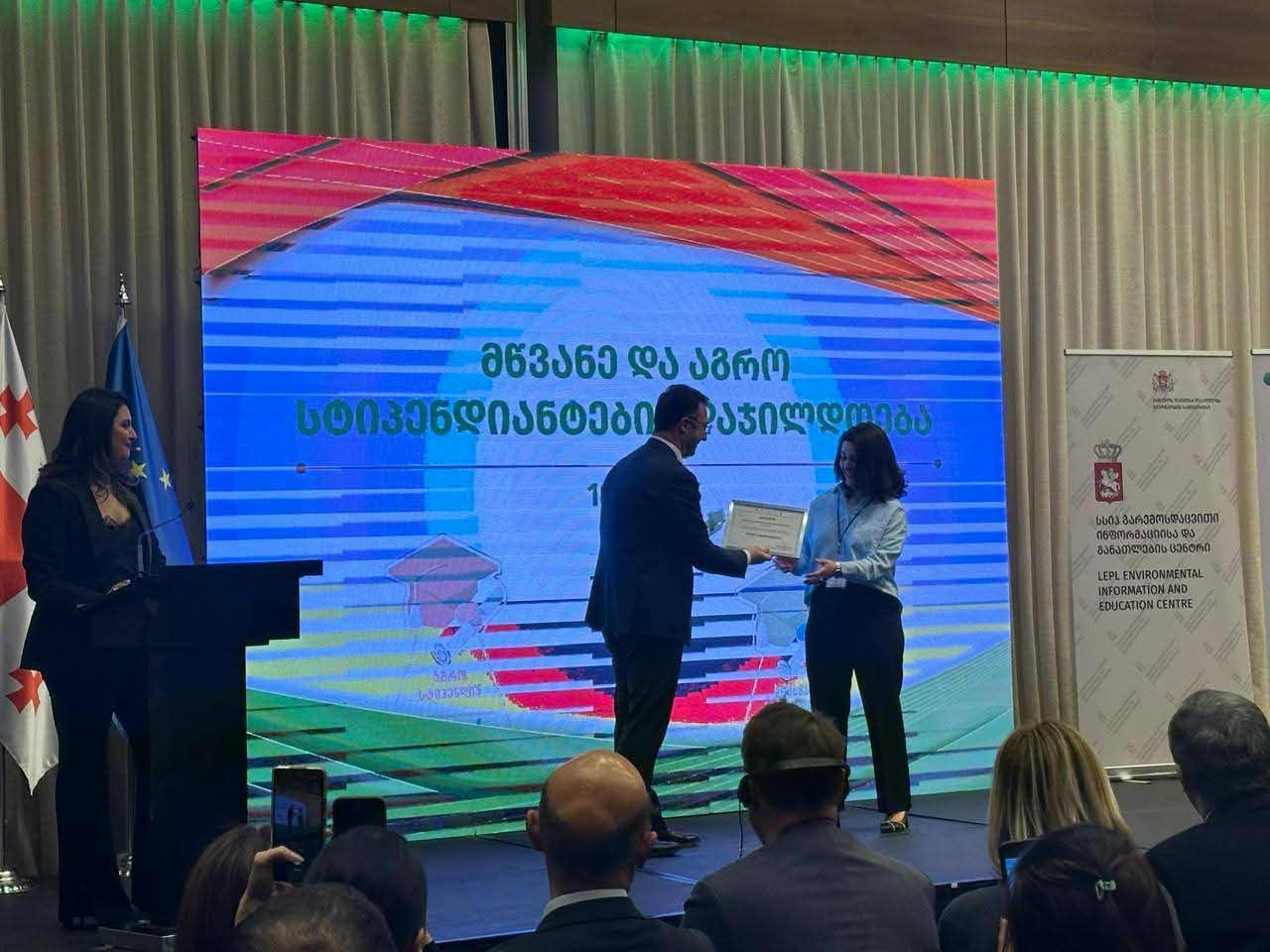 დაჯილდოების ცერემონიას უნივერსიტეტის რექტორი შალვა ჭკადუა და აგრარულ, საბუნებისმეტყველო მეცნიერებათა და ტექნოლოგიების ფაკულტეტის დეკანი ლევან შავაძე ესწრებოდნენ.